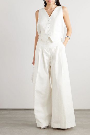 Open-back cotton and linen-blend and crepe vest