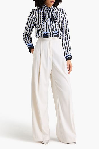 Printed silk-twill wide-leg pants