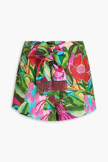 Printed linen-blend shorts