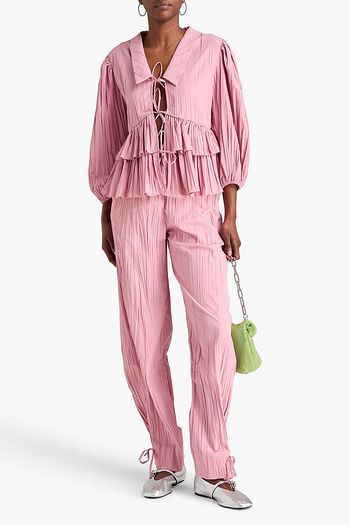 Coralee ribbed Pima cotton-blend jersey and poplin top