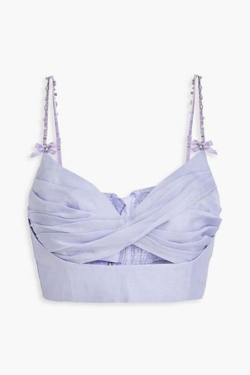 Cropped embroidered ramie and cotton-blend gauze top