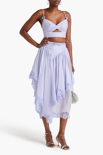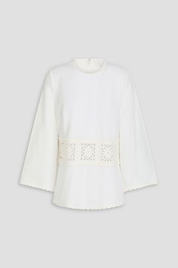 Guipure lace-paneled silk-blend crepe blouse