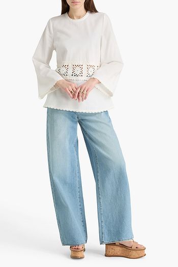 Floral-print broderie anglaise cotton top