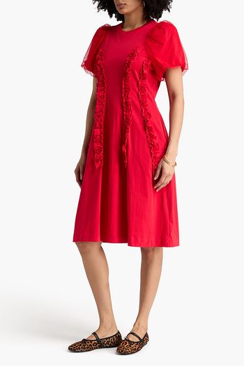 Ruffled silk-chiffon midi skirt