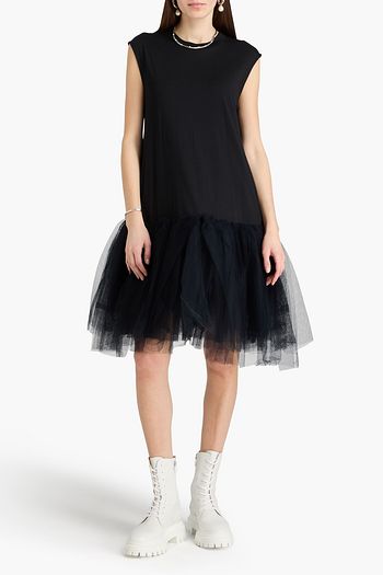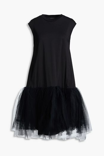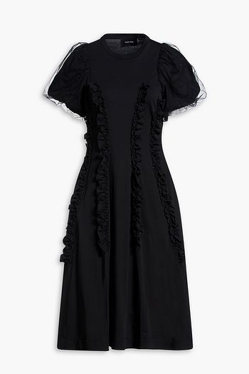 Cold-shoulder asymmetric ribbed-knit midi dress