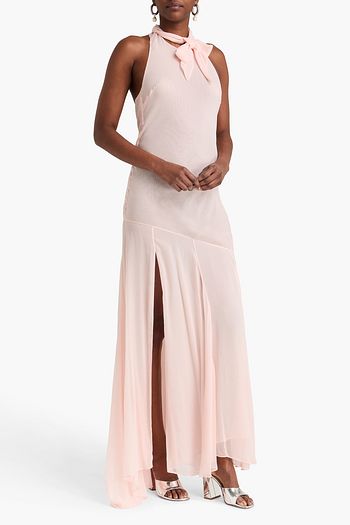 Open-back ruched satin-jersey halterneck maxi dress