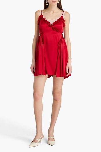 Ruffled silk-satin mini slip dress