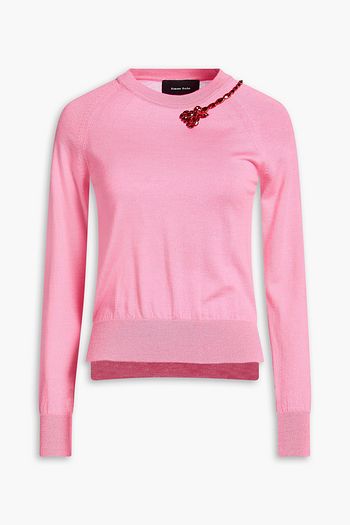 Crystal-embellished wool and silk-blend sweater