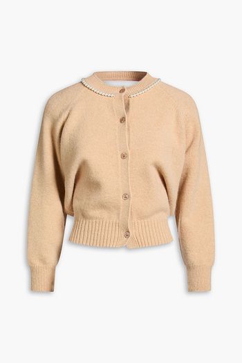 Cutout faux pearl-embellished wool-blend cardigan