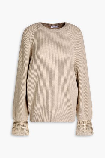 Bead-embellished ribbed cashmere sweater