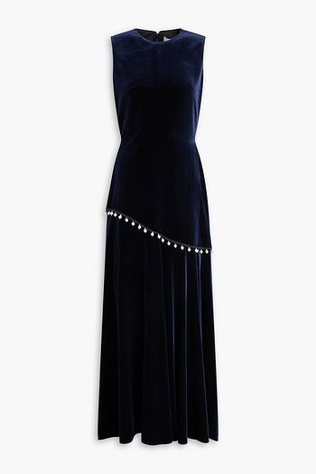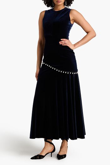 Adora cold-shoulder crystal-embellished cutout velvet midi dress