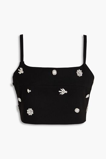 Cropped crystal-embellished ponte bustier top