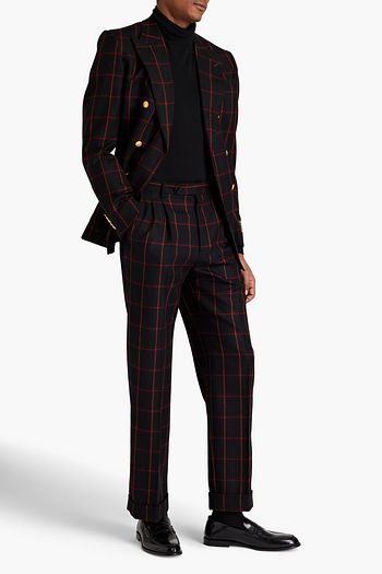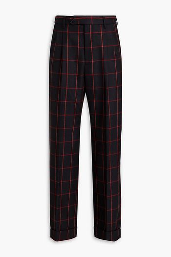 Pleated checked wool-twill pants