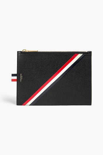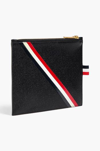Striped pebbled-leather pouch