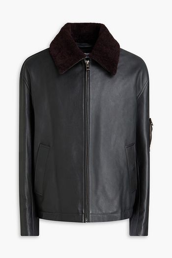 Wool-blend tweed-paneled leather jacket