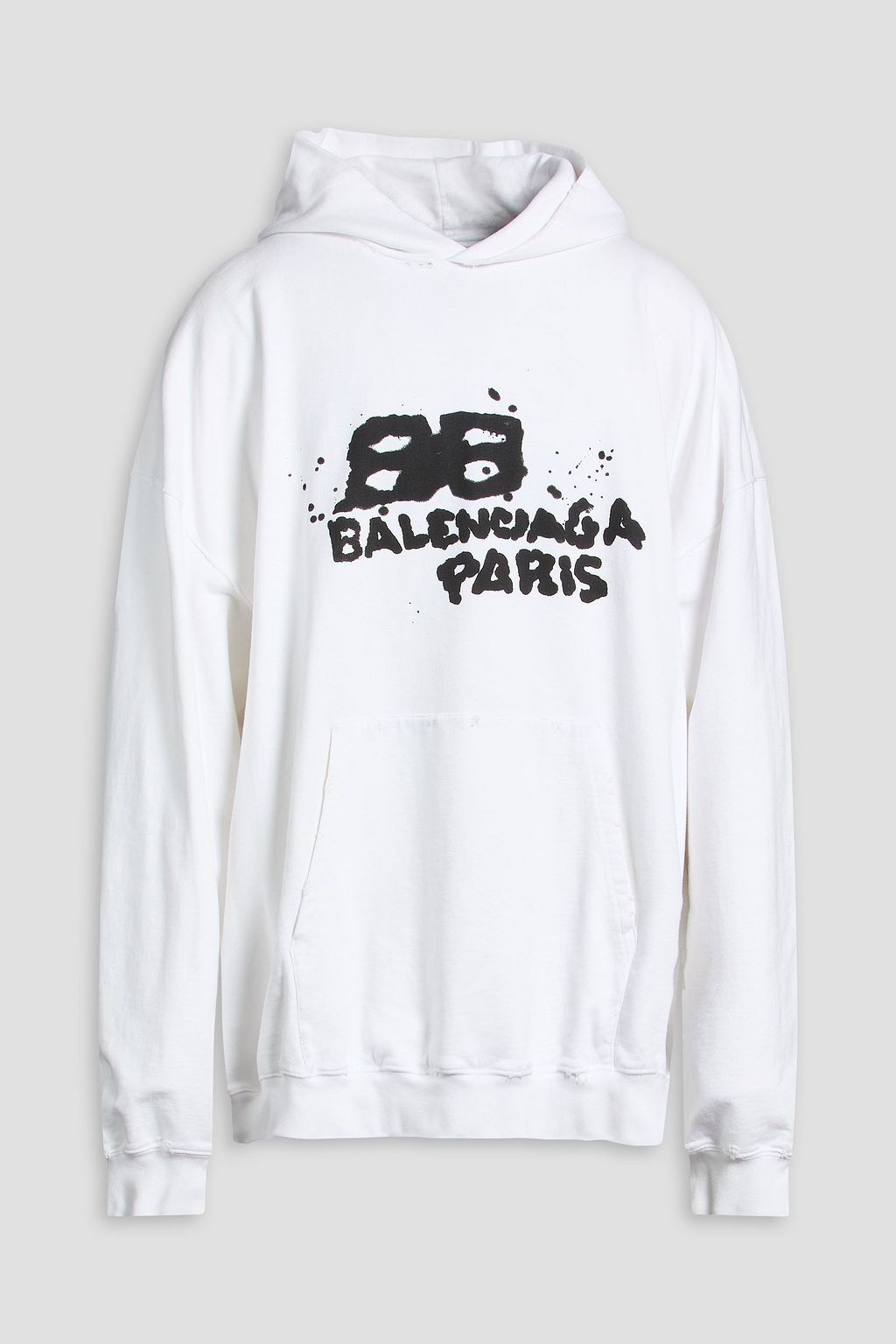 BALENCIAGA Distressed logo-print French cotton-terry hoodie
