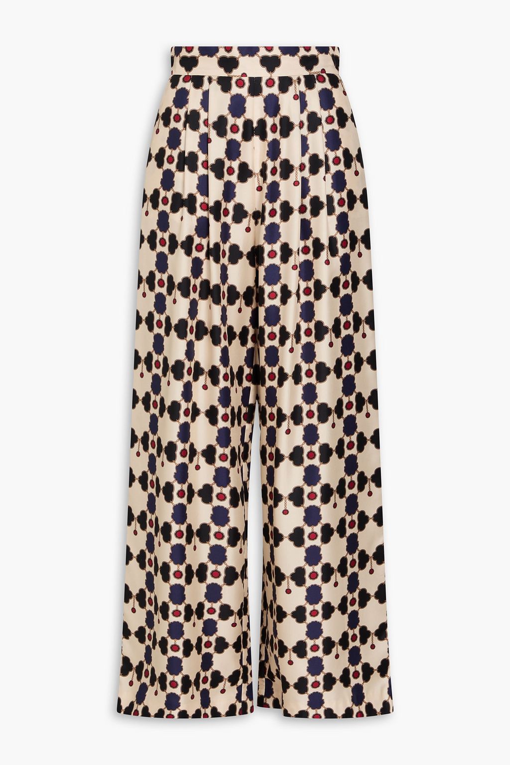 BORGO DE NOR Melia pleated printed silk-twill wide-leg pants