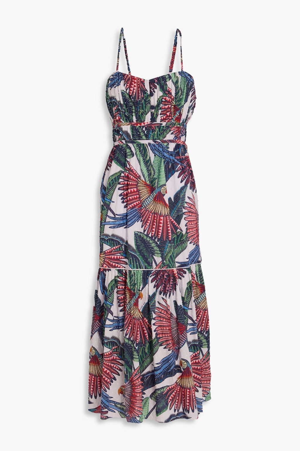FARM RIO Printed plissé Swiss-dot cotton midi dress