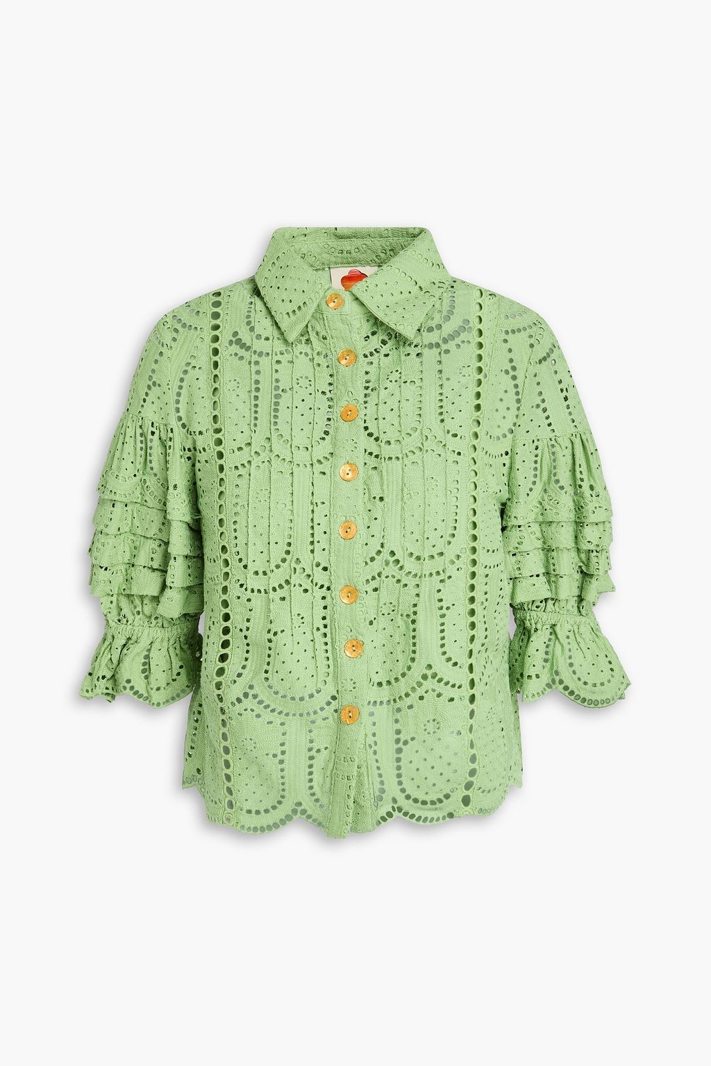 FARM RIO Pintucked broderie anglaise cotton shirt