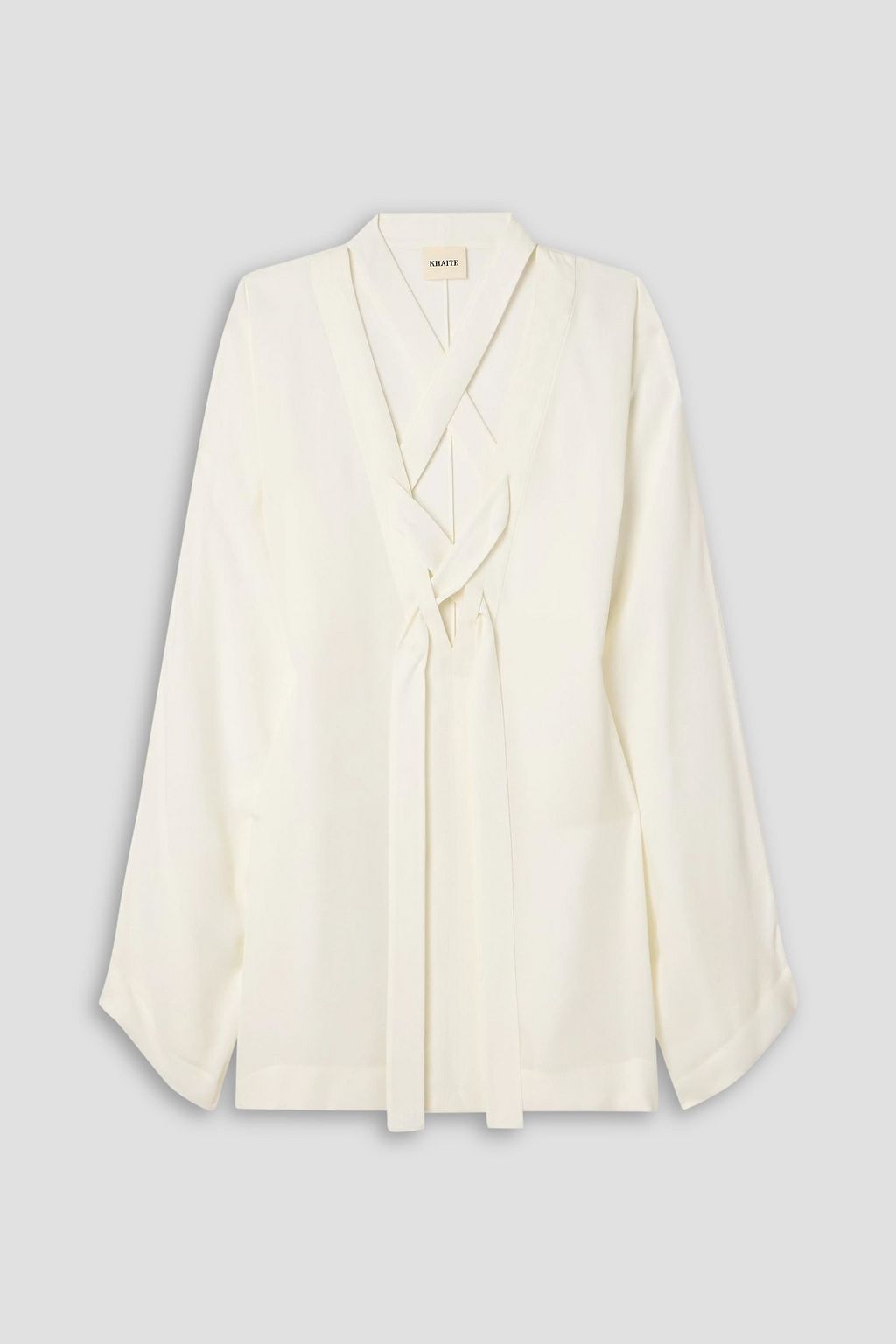 KHAITE Mehna lace-up silk crepe de chine mini dress