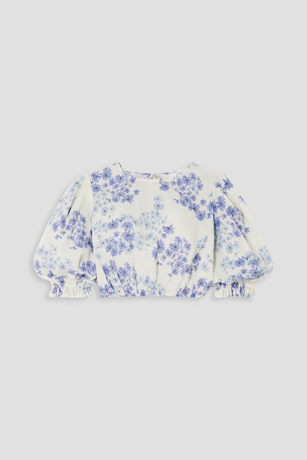 PEONY SWIMWEAR Vacation cropped cutout floral-print cotton-blend gauze top