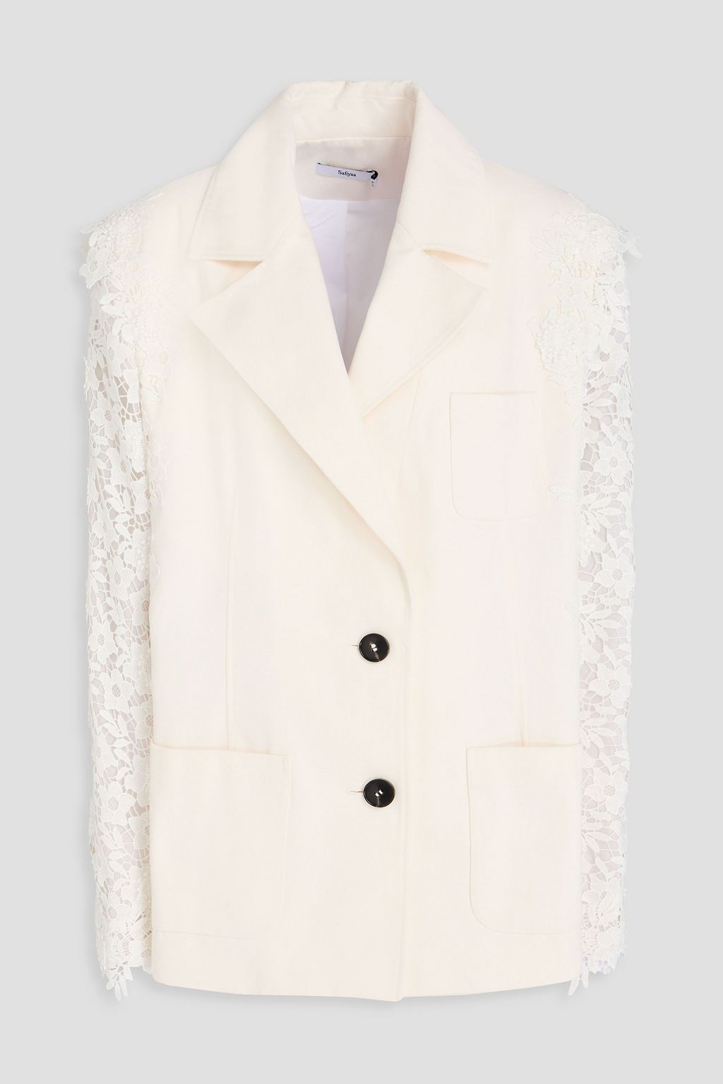 SAFIYAA Cannis guipure lace-paneled cotton-drill blazer