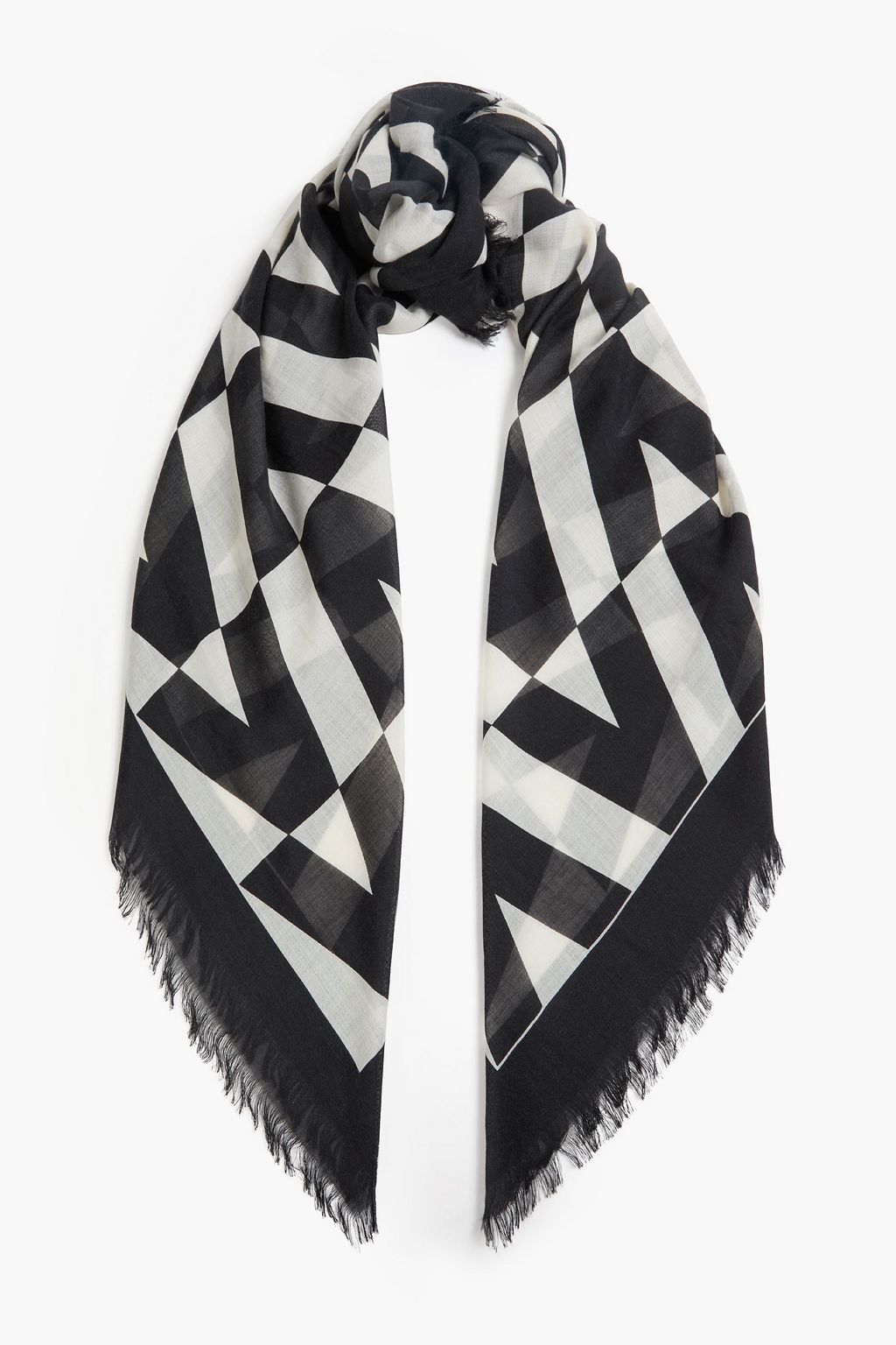 VALENTINO GARAVANI Frayed logo-print cashmere and silk-blend gauze scarf