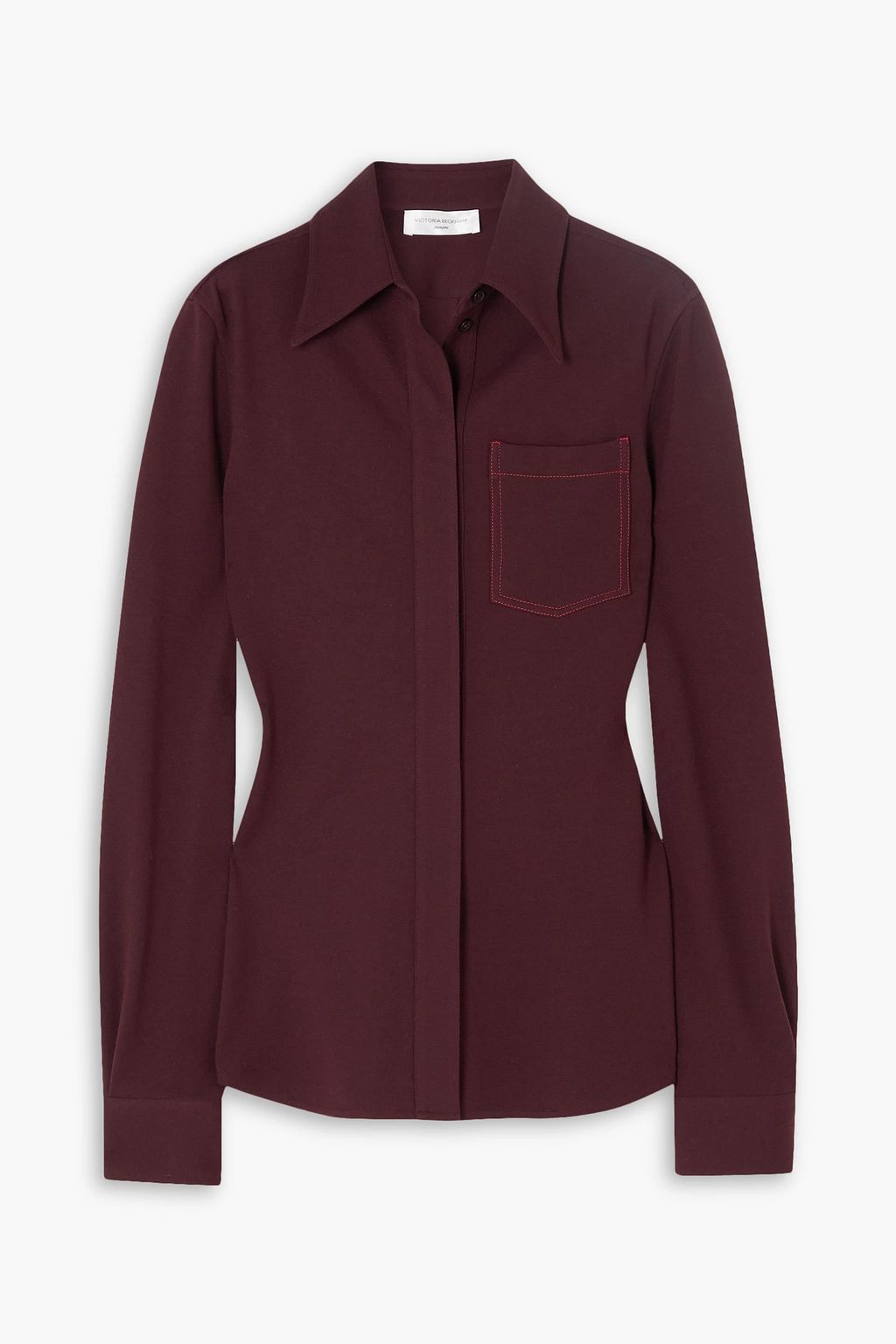 You can rely on Victoria Beckham for elegant and immaculately tailored wardrobe staples. This chic shirt is cut from jersey in a slim fit that's nipped at the waist for extra definition. It has concealed buttons and is minimally detailed with contrasting topstitching along the neat chest pocket.