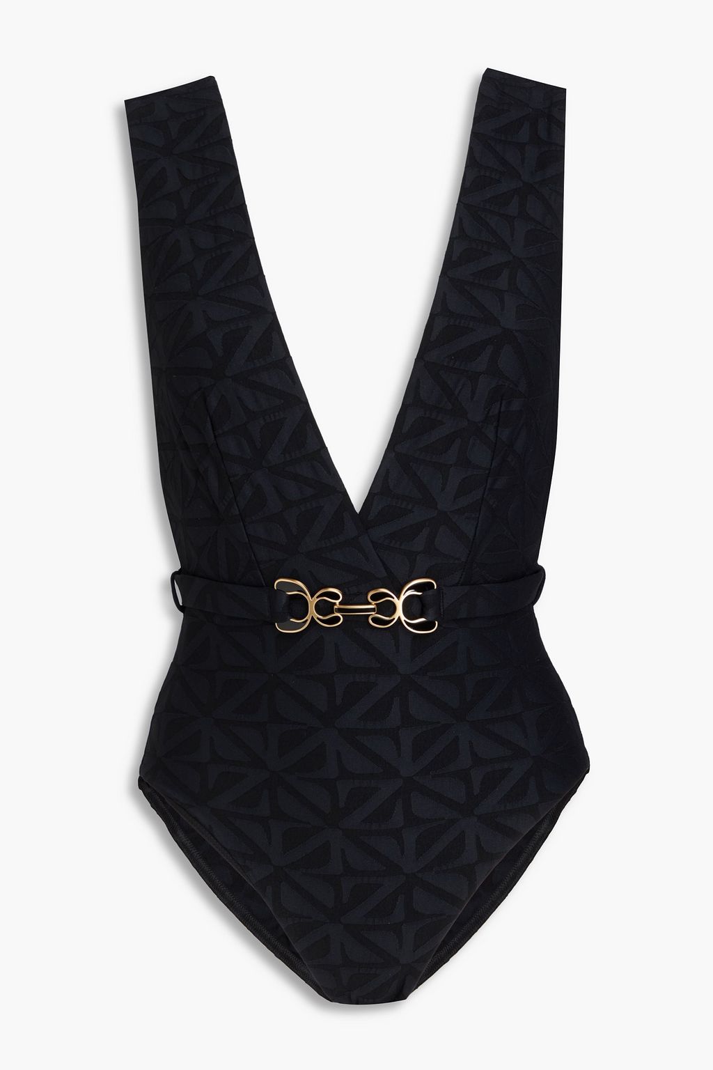ZIMMERMANN Belted stretch-jacquard swimsuit