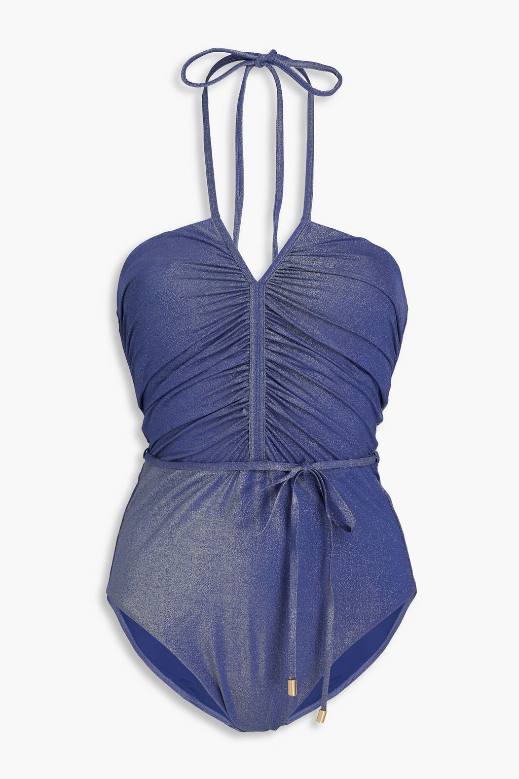 ZIMMERMANN Ruched metallic halterneck swimsuit