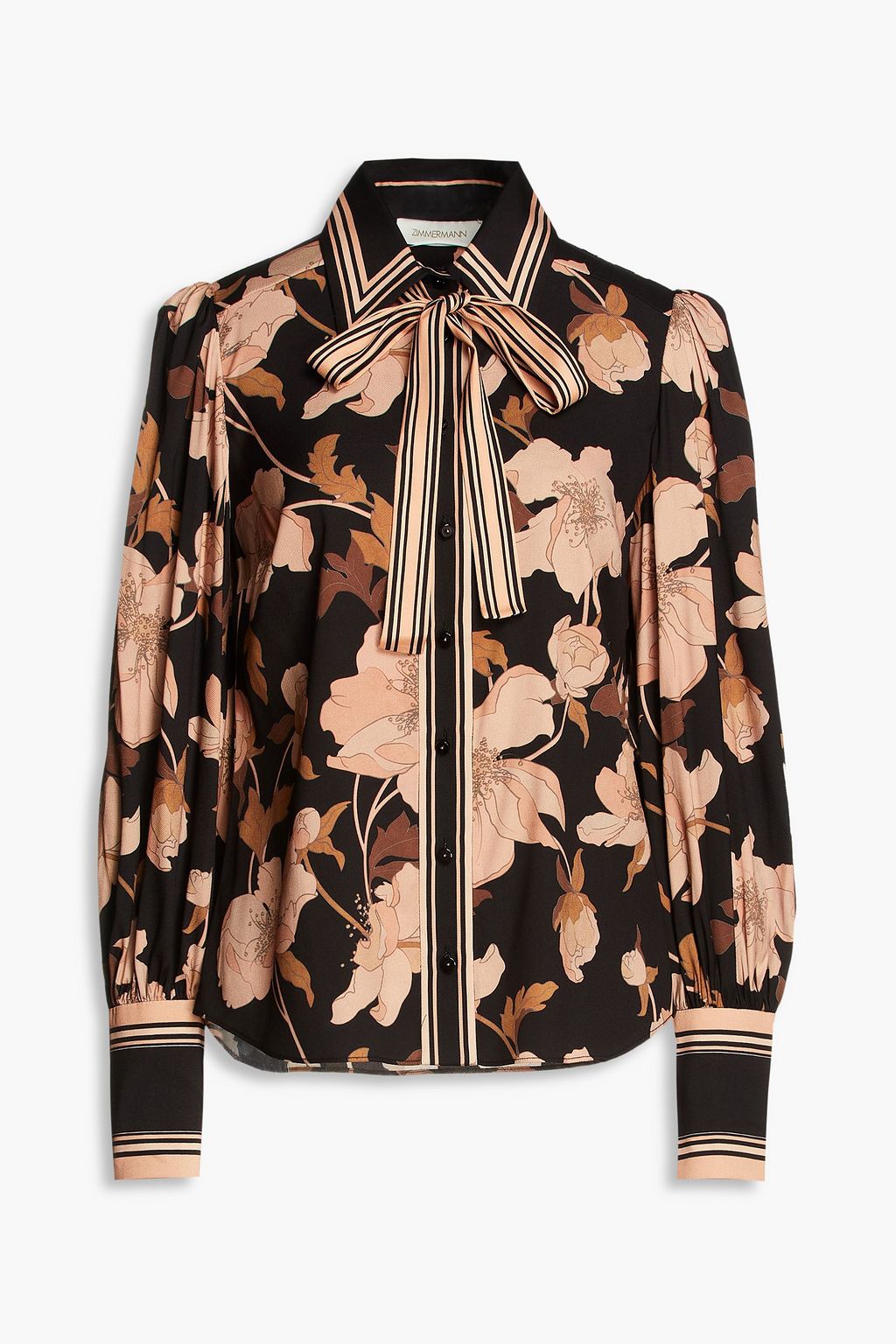 ZIMMERMANN Pussy-bow floral-print silk-blend twill shirt