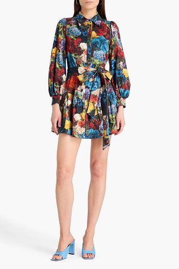 Lucy tasseled floral-print cotton-blend poplin mini dress