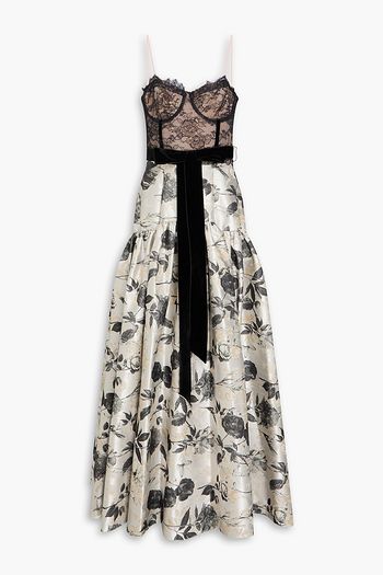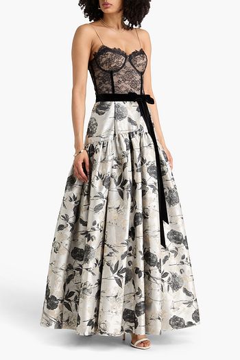 Julietta floral-print lace-paneled crepe de chine midi dress