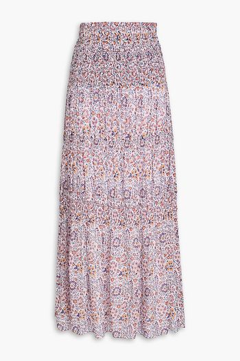 Juliany asymmetric draped printed stretch-jersey mini skirt