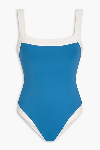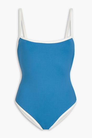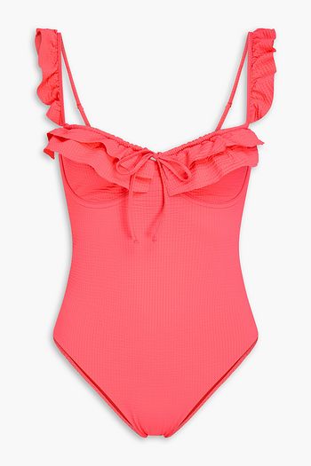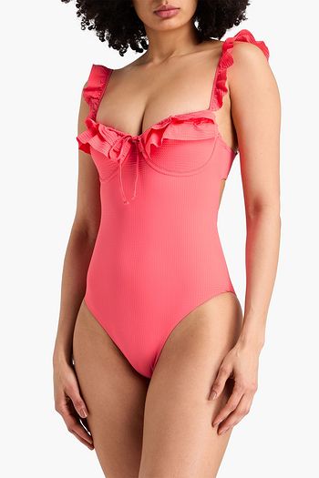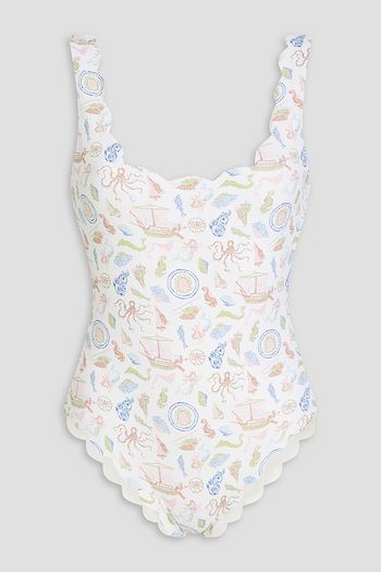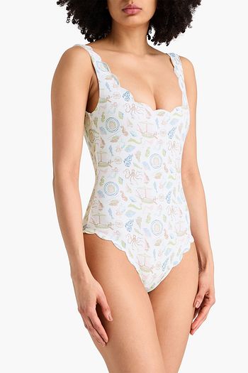 Palm Springs reversible lace-up scalloped seersucker swimsuit