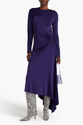 Asymmetric ruched stretch-jersey maxi dress