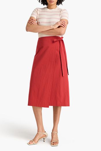 Linen-blend midi wrap skirt