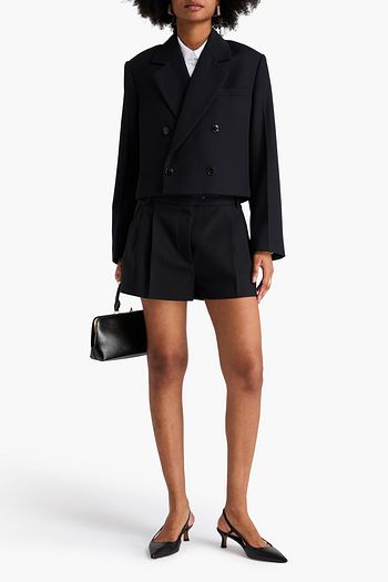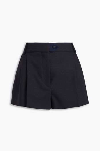 Skirt-effect pleated wool and silk-blend crepe shorts