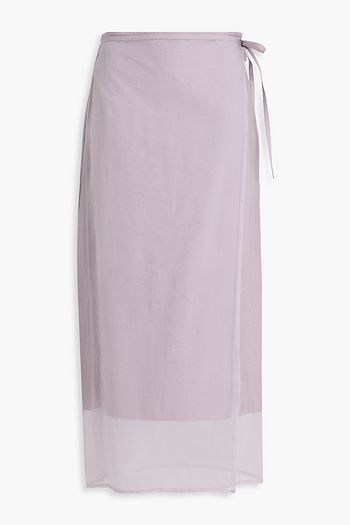 Pleated twill midi wrap skirt