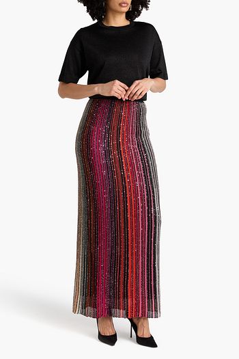 Eula ribbed and pointelle-knit merino wool maxi skirt