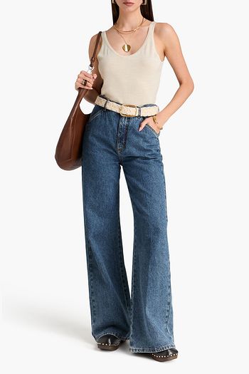 Cropped bead-embellished stretch-cotton jersey tank