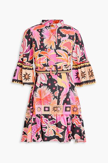 Belted floral-print cotton mini shirt dress