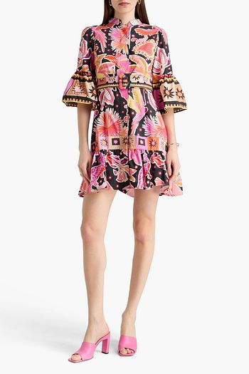 Angy crochet-trimmed printed cotton-blend mini dress