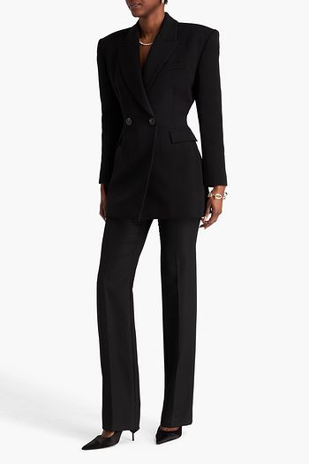 Double-breasted grain de poudre wool-blend blazer