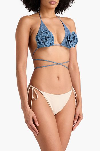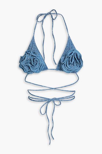 Floral-appliquéd triangle bikini top