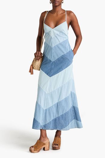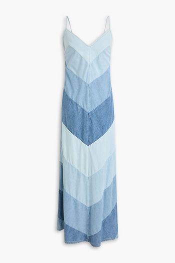 Deconstructed asymmetric cotton-jersey and denim maxi dress