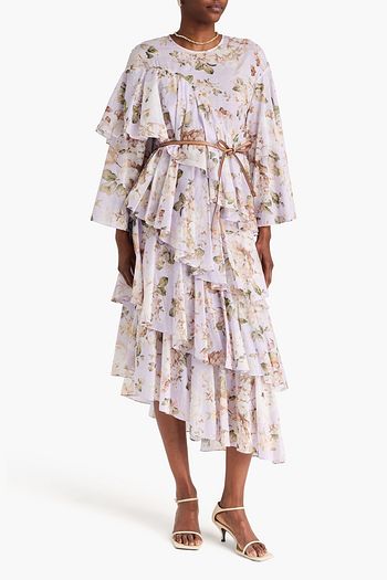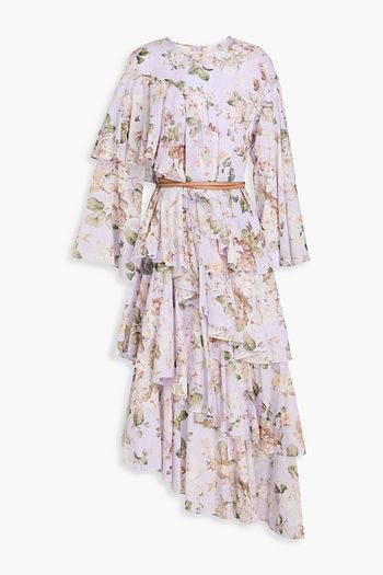 Asymmetric crystal-embellished floral-print silk crepe de chine midi dress