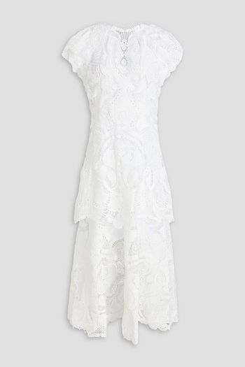 Lucil lace-paneled cotton-blend poplin maxi shirt dress