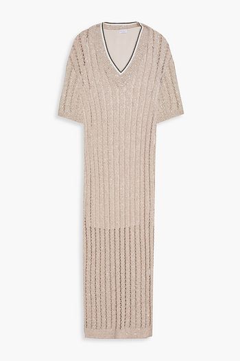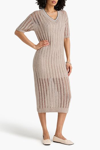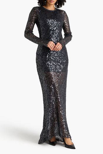 Broderie anglaise-trimmed sequined silk-tulle mini dress