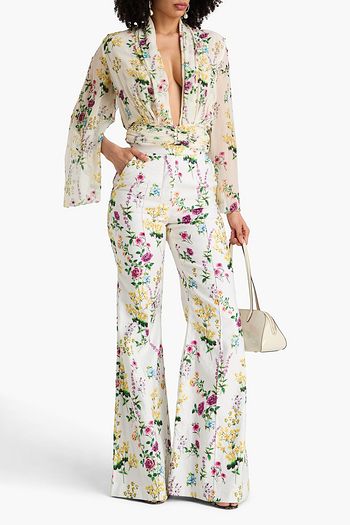Eden floral-print silk-twill wide-leg pants